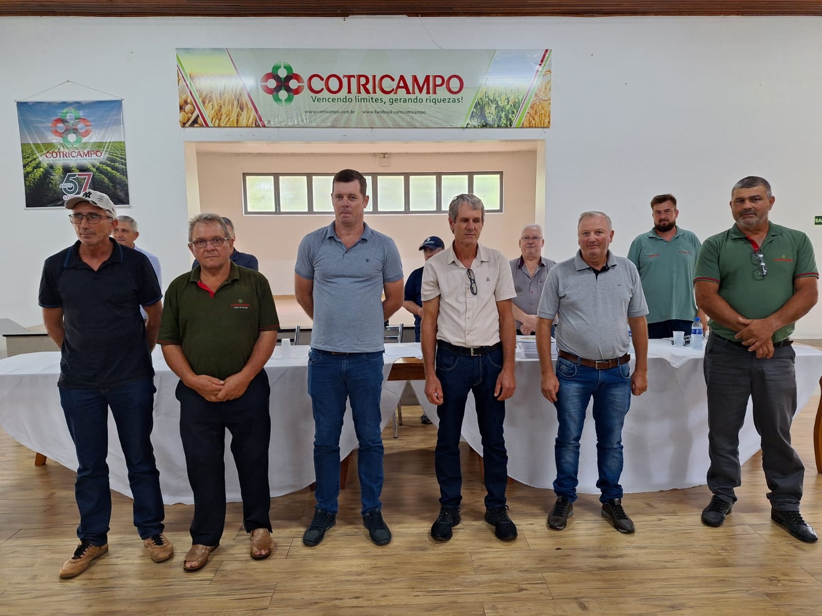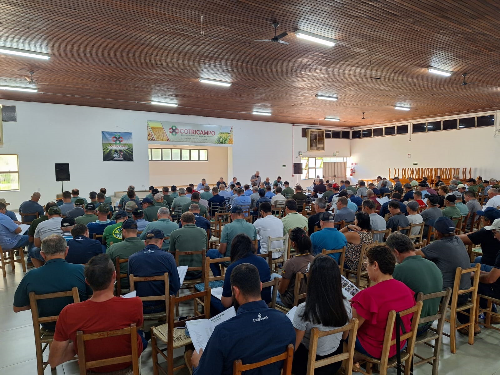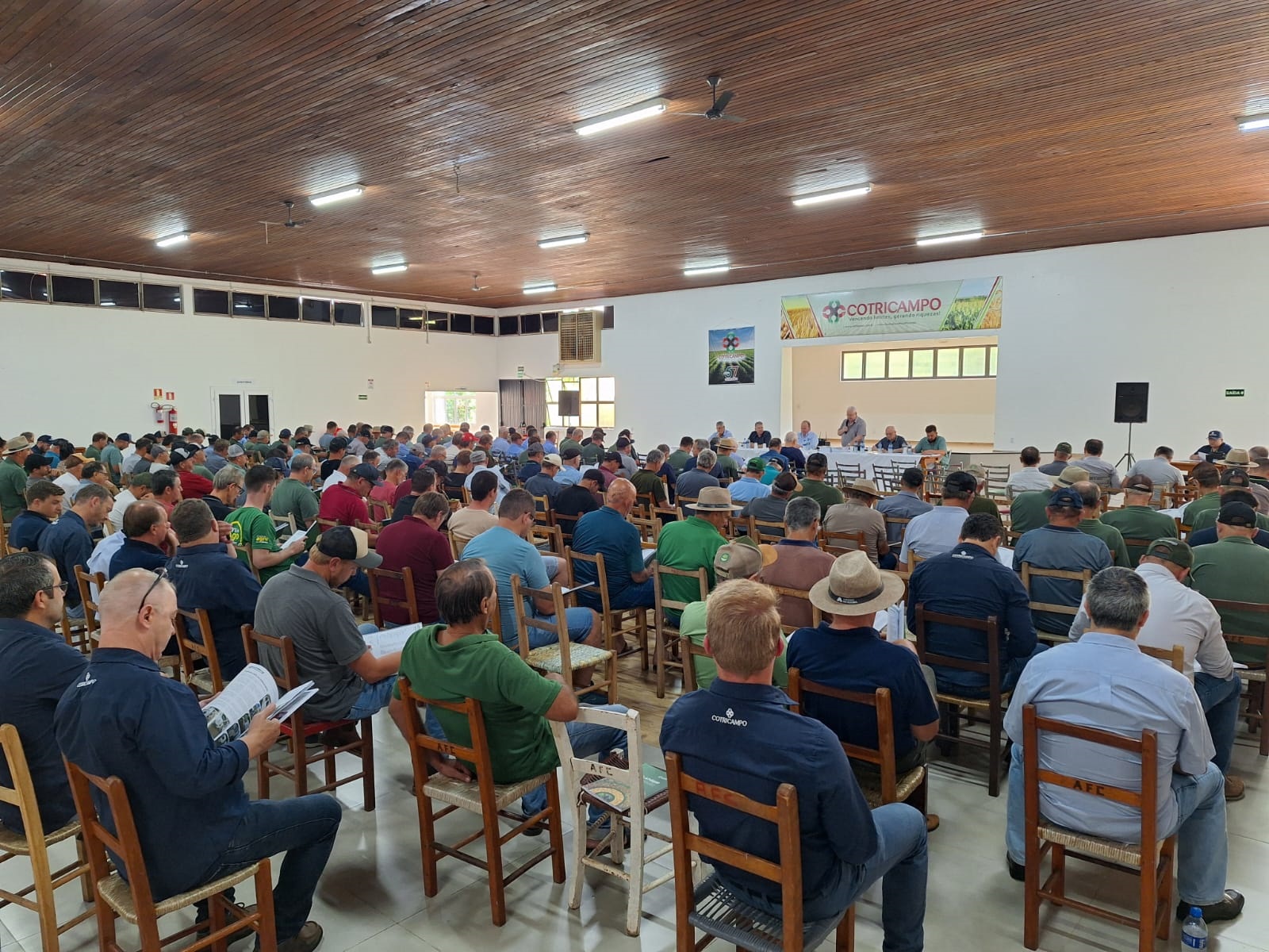 A Cotricampo promoveu na tarde de terça-feira, 11 de março, sua Assembleia Geral Ordinária de 2025 – AGO, na sede social da Afucampo, em Campo Novo, reunindo o diretor-presidente, Gelson Bridi, o diretor-secretário, Luciano Seefeld, o diretor-superintendente, Neri Jose dos Santos, o contador, Roni Almeida, o auditor independente, João Santo da Silva, além de conselheiros deliberativos e fiscais, lideranças de núcleo, produtores rurais associados e colaboradores. O evento encerrou o ciclo que teve início com 17 pré-assembleias, percorrendo os municípios de atuação da cooperativa na região Noroeste.