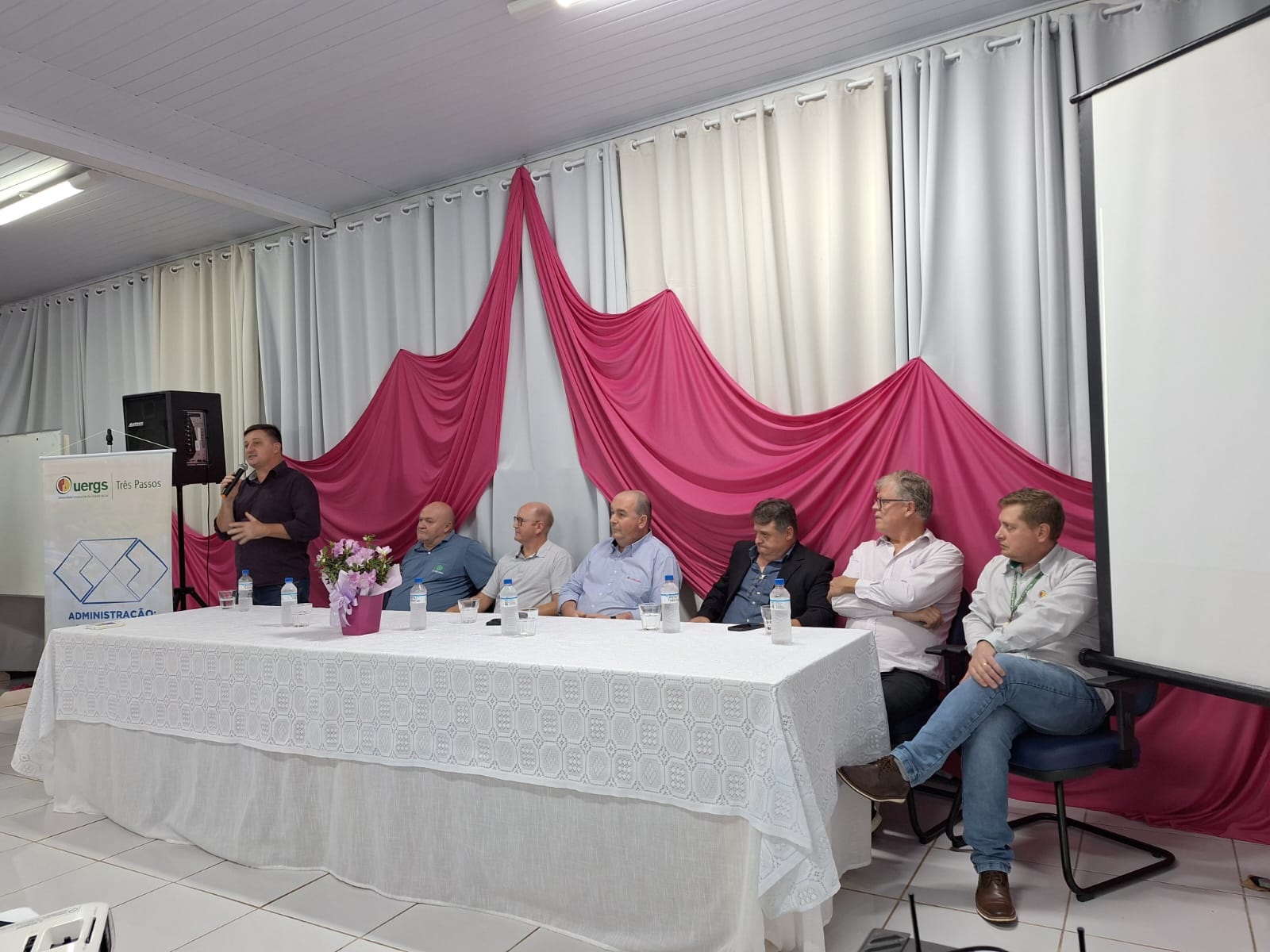 Em uma noite especial para a Universidade Estadual do Rio Grande do Sul - UERGS unidade Três Passos, o presidente da Cotricampo, Gelson Bridi, foi o painelista convidado para a Aula Magna Inaugural do curso de Administração: Agronegócio. O evento aconteceu na quarta-feira (21), no auditório do Centro de Convivência Irmã Dulce, no Parque da Feicap, em Três Passos. Estudantes dos três cursos ofertados pela universidade (Administração: Agronegócio; Agronomia e Gestão Ambiental), prestigiaram o momento, assim como professores e servidores da instituição.