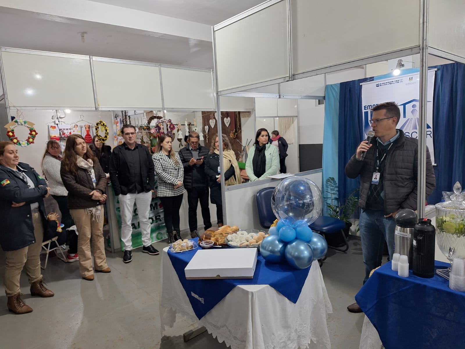 O gerente do escritório local da Emater, Fabricio Veit, coordenou o momento de comemoração, valorizando os profissionais extensionistas do município. Também participaram do momento, a supervisora microrregional da Emater/RS-Ascar, Rejane Gollo Fornari, o prefeito, Pedro dos Santos, vice-prefeita, Marciéli Reis, vereadores Ademar Aguiar e Marcos Moraes, secretários municipais, representantes de entidades locais, como a APAE, além de agricultores familiares, artesãs e Asapan – Associação de Proteção dos Animais.