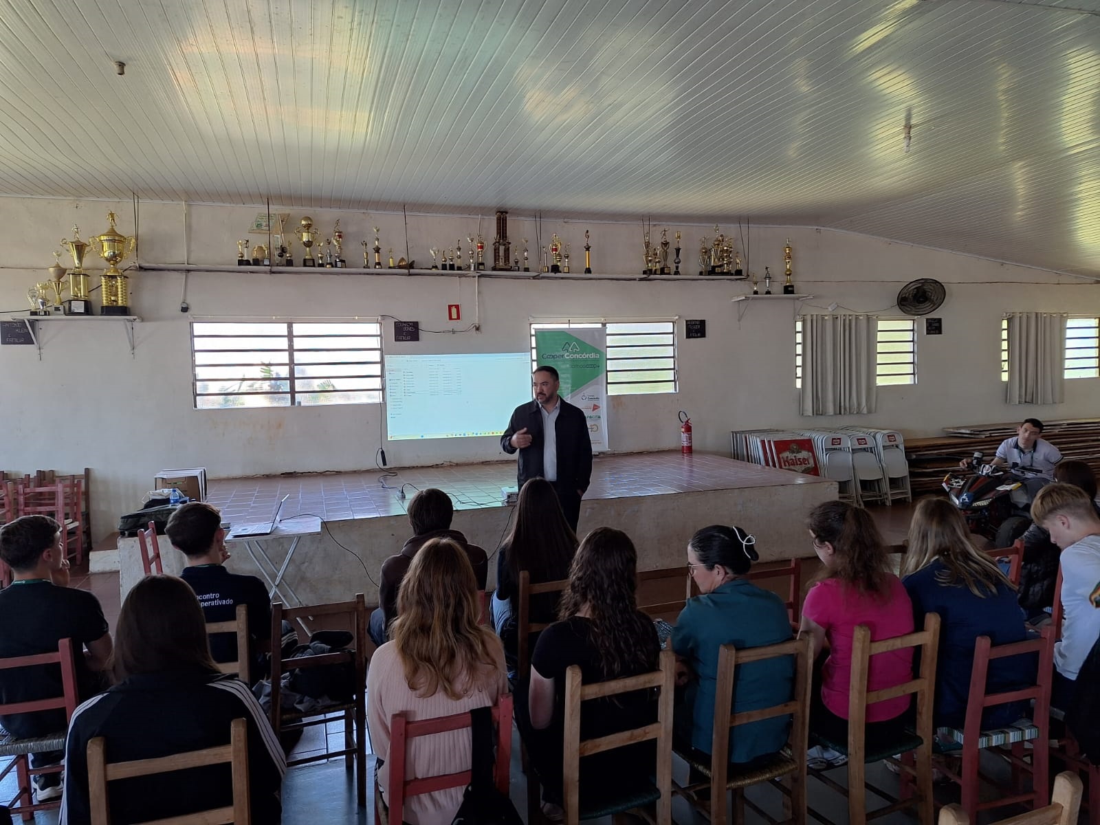 Na tarde de terça-feira (23), foi realizada mais uma etapa importante na jornada dos jovens que integram a turma de Tiradentes do Sul do programa Aprendiz Cooperativo do Campo, com apresentação dos planos de negócios. A gerente de Recursos Humanos (RH) da Cotricampo, Meri Terezinha Guth, o gerente da unidade Cotricampo em Novo Planalto, João Carlos Pavani, a analista de administração pessoal, Juliane Viana, e o jornalista do departamento de comunicação social, Vinicius Araujo, representaram a cooperativa. Tiago Moroni de Souza, diretor de negócios, e Jéssica Donini Pedroso, auxiliar pedagógica, representaram a CooperConcórdia. A coordenadora local da turma, Taísa Braum, coordenou os trabalhos.