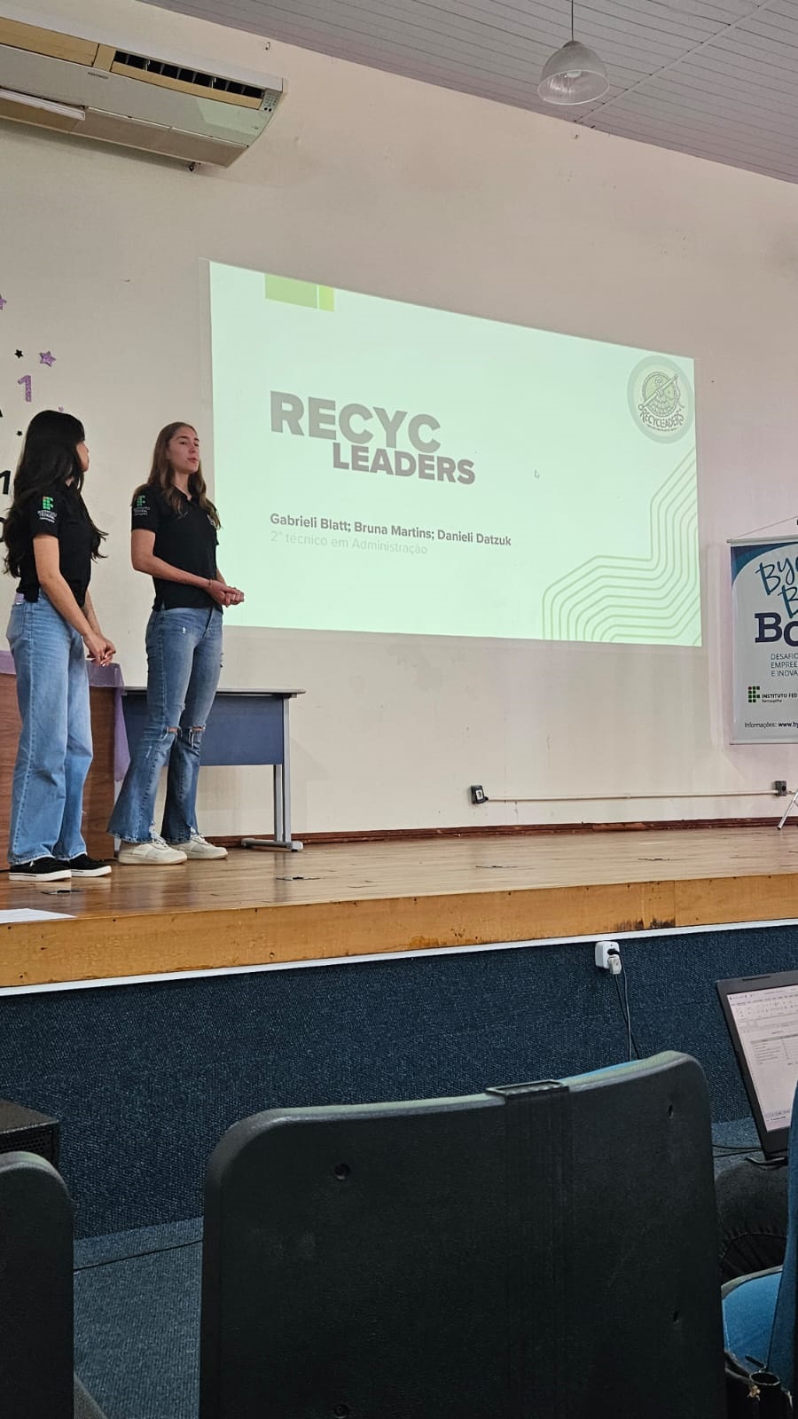 Em 1º lugar a equipe bicampeã RecycLeaders, formada pelas estudantes do técnico em Administração, Gabrieli Zang Blatt, Bruna Adriana Martins e Danieli Datzuk Santos; em 2º lugar a equipe Crocan, formada pelas estudantes do técnico em Alimentos, Mileni Graeff Feltes, Luara Canova da Silva e Lais Schimanoski.