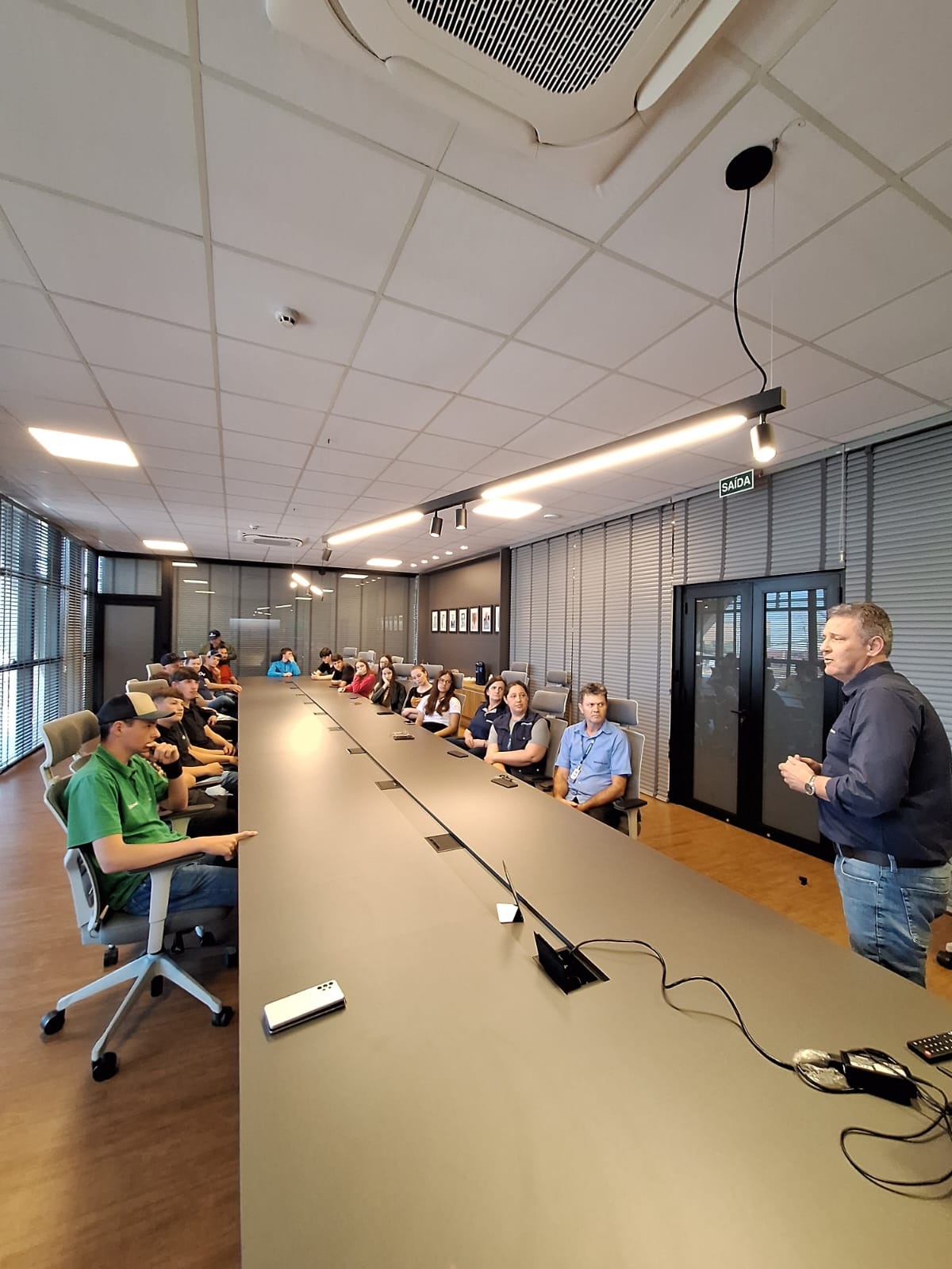 O diretor-secretário, Luciano Seefeld, realizou a acolhida do grupo, na sala de reuniões do conselho, junto ao centro administrativo, com uma explanação sobre o trabalho que a cooperativa desempenha na região, prestando assistência técnica, garantindo armazenamento e comercialização de grãos e insumos, além do trabalho desempenhado pela indústria de trigo e fábrica de rações, entre outros segmentos que compõe a empresa.