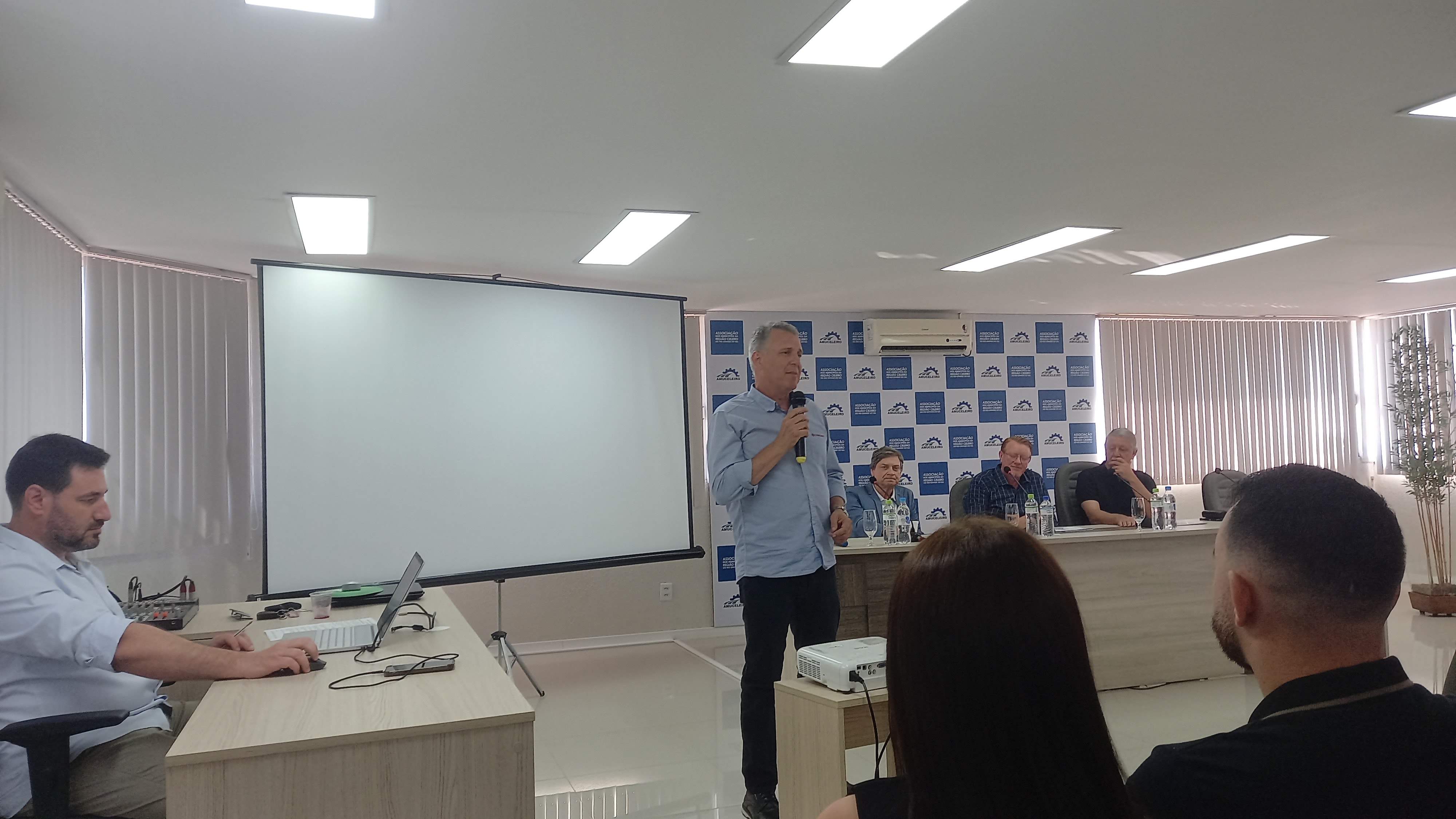 Nesta sexta feira, 23 de janeiro, as nove horas da manha, por ocasião da reunião da AMUCELEIRO – Associação dos Municípios da Região Celeiro, o diretor secretário Luciano Seefeld acompanhado do gerente de comunicação social Vadacir Guedes, realizaram o convite oficial aos prefeitos para uma presença efetiva na programação da ExpoAgro – 10 anos, que ocorre de 25 a 28 de fevereiro em Campo Novo. O presidente da AMUCELEIRO, prefeito de Bom Progresso Norimar Schossler também colocou em votação, com a aprovação dos presentes, de um projeto do Prefeito Pedro dos Santos de Campo Novo, para a presença institucional da AMUCELEIRO e da Rota do Yucumã, em estande único na feira, tendo como instituições parceiras no projeto a Prefeitura Municipal de Campo Novo, AMUCELEIRO, Rota do Yucumã e Câmara Municipal de Vereadores de Campo Novo.