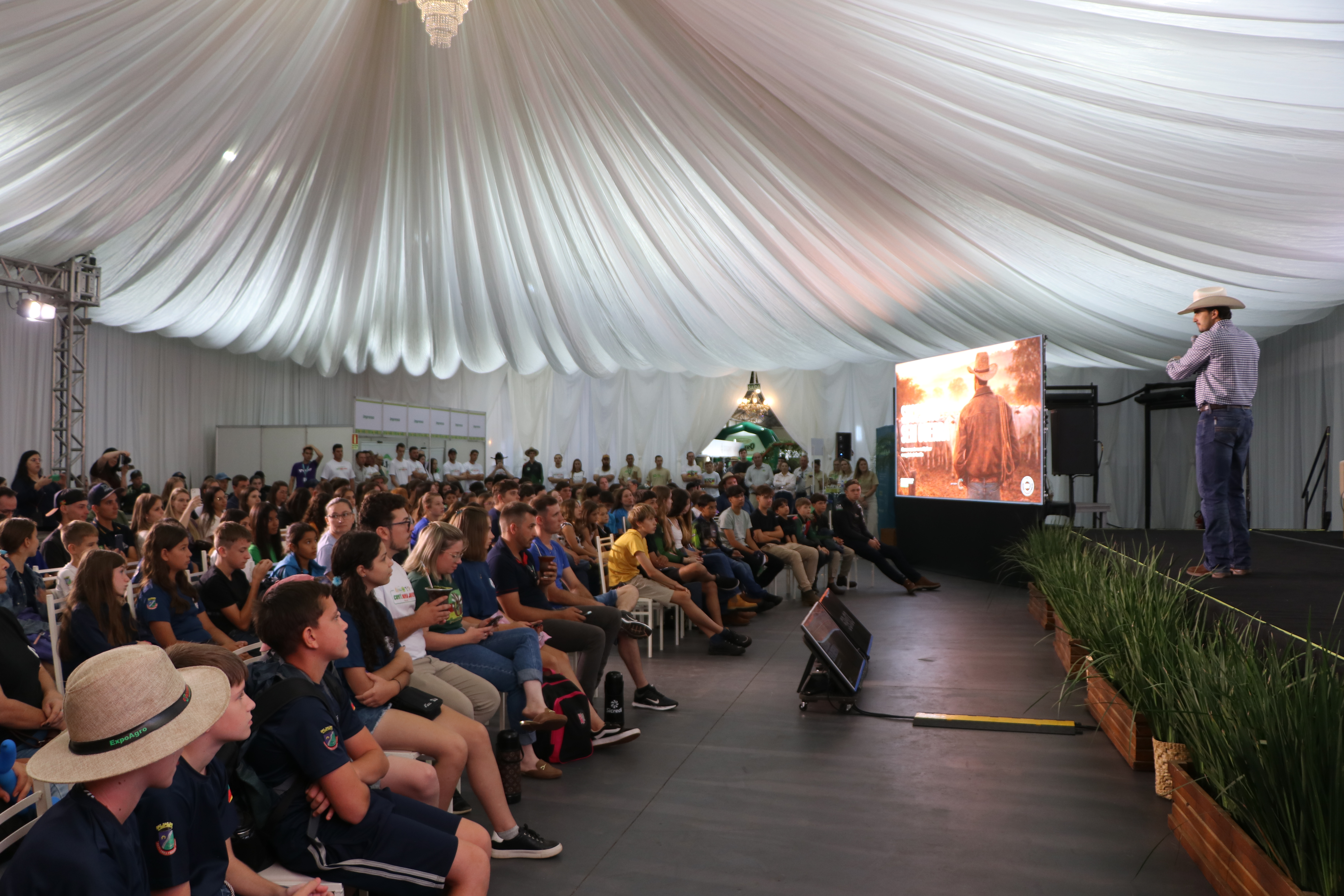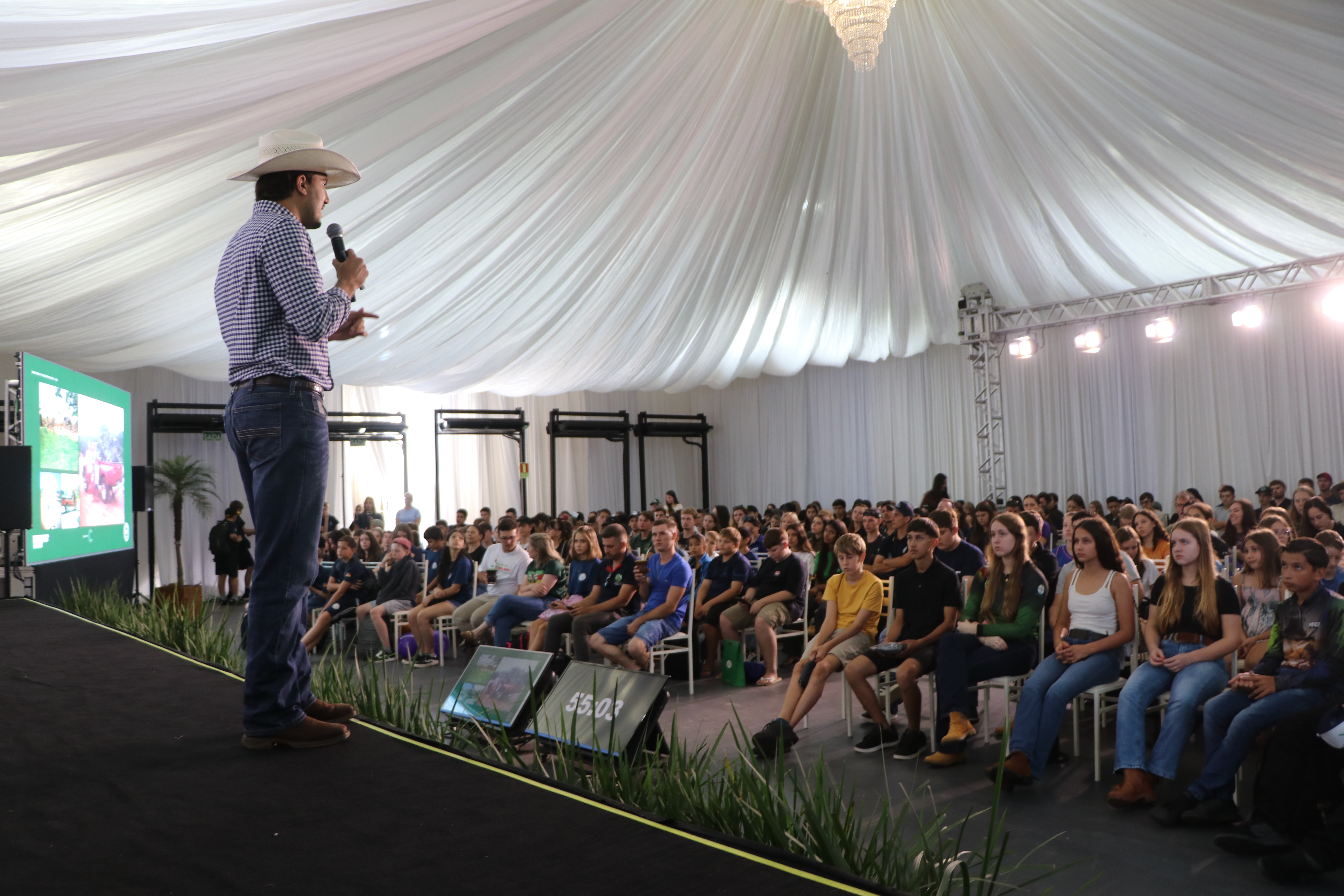 A programação do Sistema Ocergs começou na quinta-feira (26), com um encontro que reuniu cerca de 350 jovens para conversar sobre o protagonismo do público no futuro do agro. O convidado foi Daniel Rabelo, fundador do projeto “Sucessão no Agro” e criador de conteúdo nas redes.