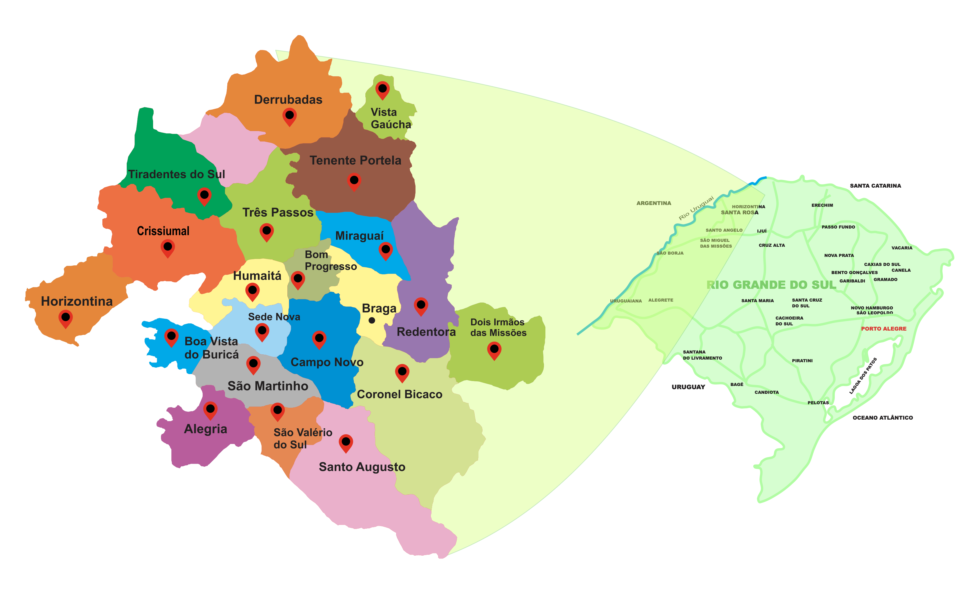Hoje a cooperativa atua em 22 municípios da Região Noroeste do Estado do Rio Grande do Sul, com as seguinte atividade econômicas: