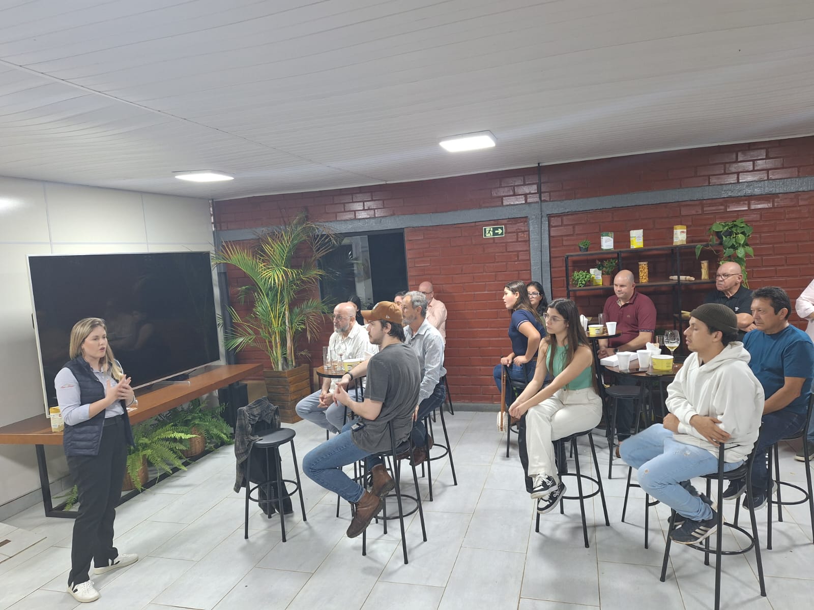Ao longo da tarde, a equipe de gestão do moinho aproveitou a ocasião para aprimorar o alinhamento de informações e de atuação comercial com representantes que levam as Farinhas Cotricampo para oito estados do Brasil.