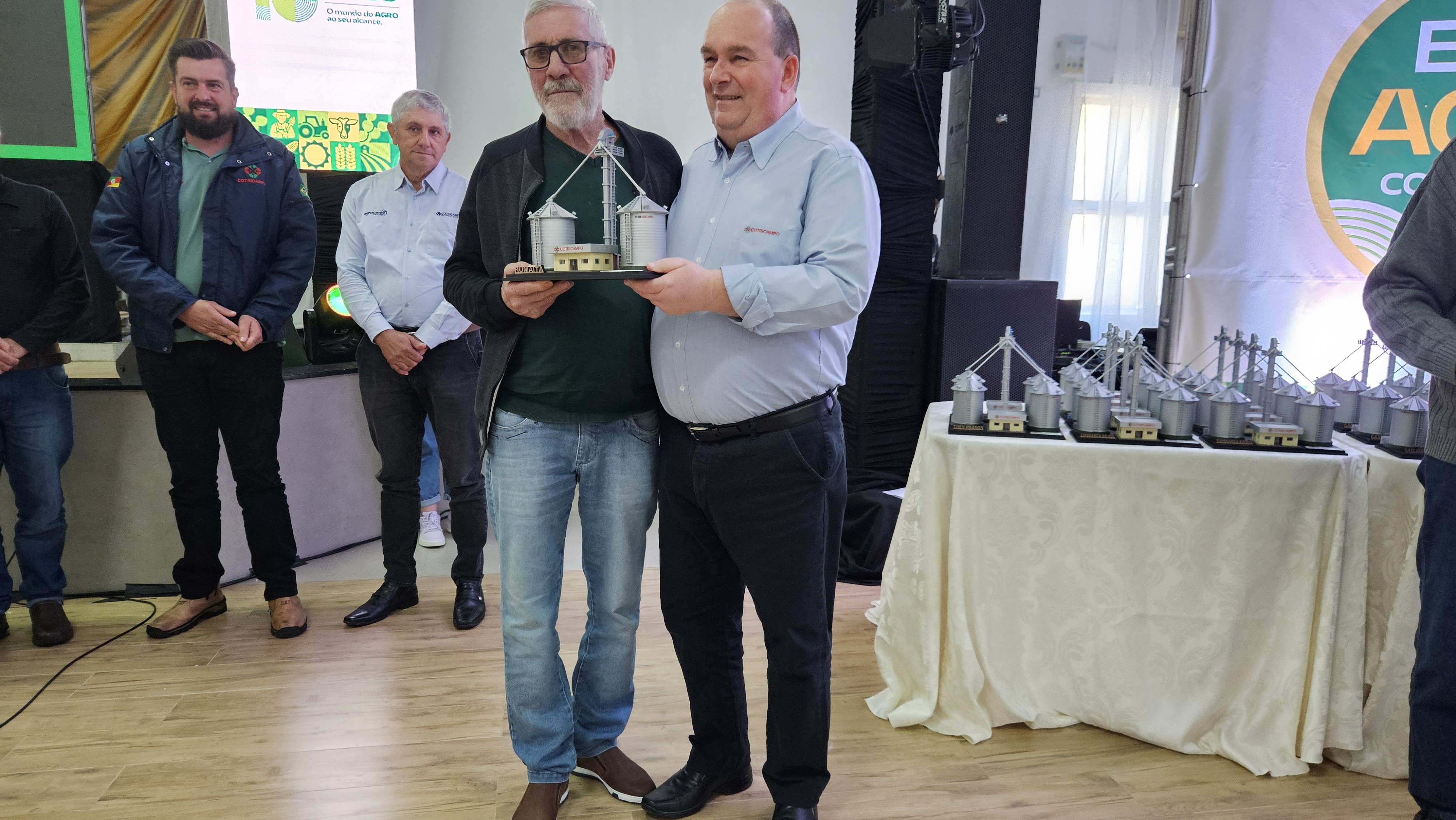 Também foram homenageados o diretor-presidente, Gelson Bridi, o diretor-secretário, Luciano Seefeld, o diretor-superintendente, Neri Jose dos Santos, o contador, Roni Almeida, além do colaborador Luiz Pires, que completou 50 anos de serviços prestados à cooperativa.