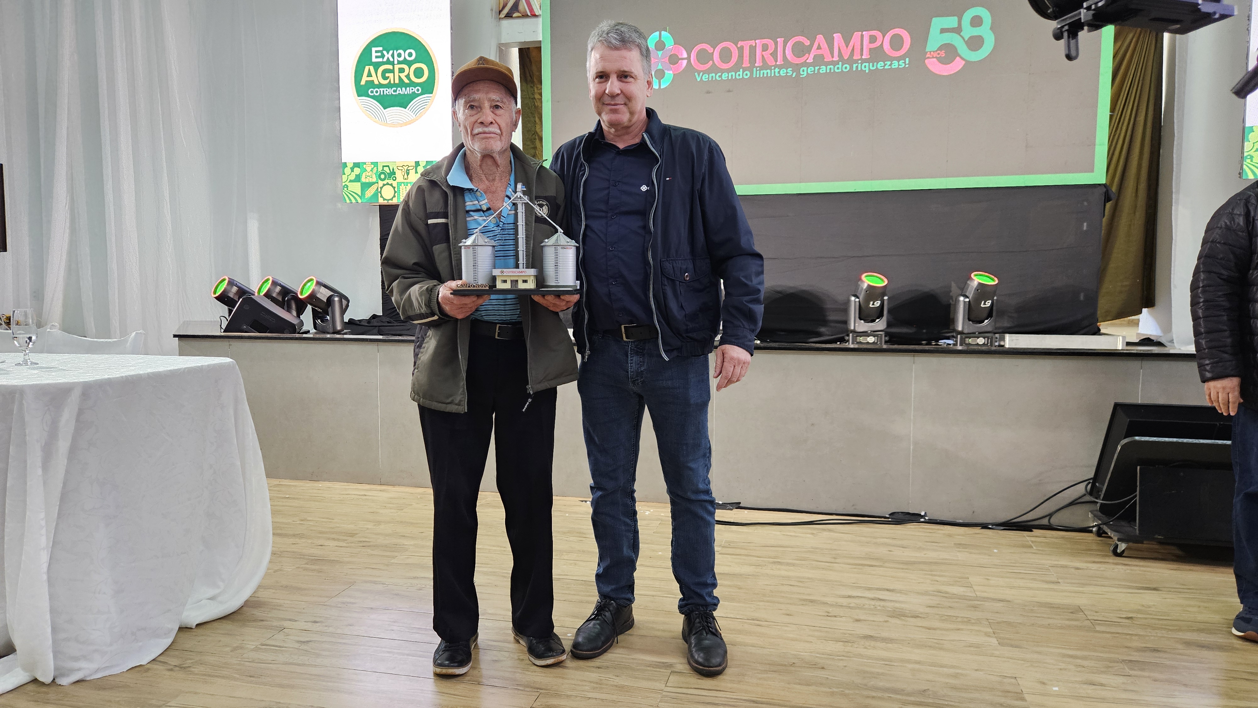 Também através do Legado Cotri, a cooperativa prestou homenagem aos produtores rurais associados que completaram mais de 50 anos como membros do quadro social. Ao todo, 49 produtores estão recebendo uma lembrança especial (um silo em forma de maquete), representando o agradecimento pela parceria e confiança destas famílias com a Cotricampo. Trinta deles estiveram recebendo a homenagem presencialmente, na sexta-feira. Os demais, que por motivos de saúde ou força maior não compareceram, estão recebendo as lembranças personalizadas ao longo desta semana, em suas residências.
