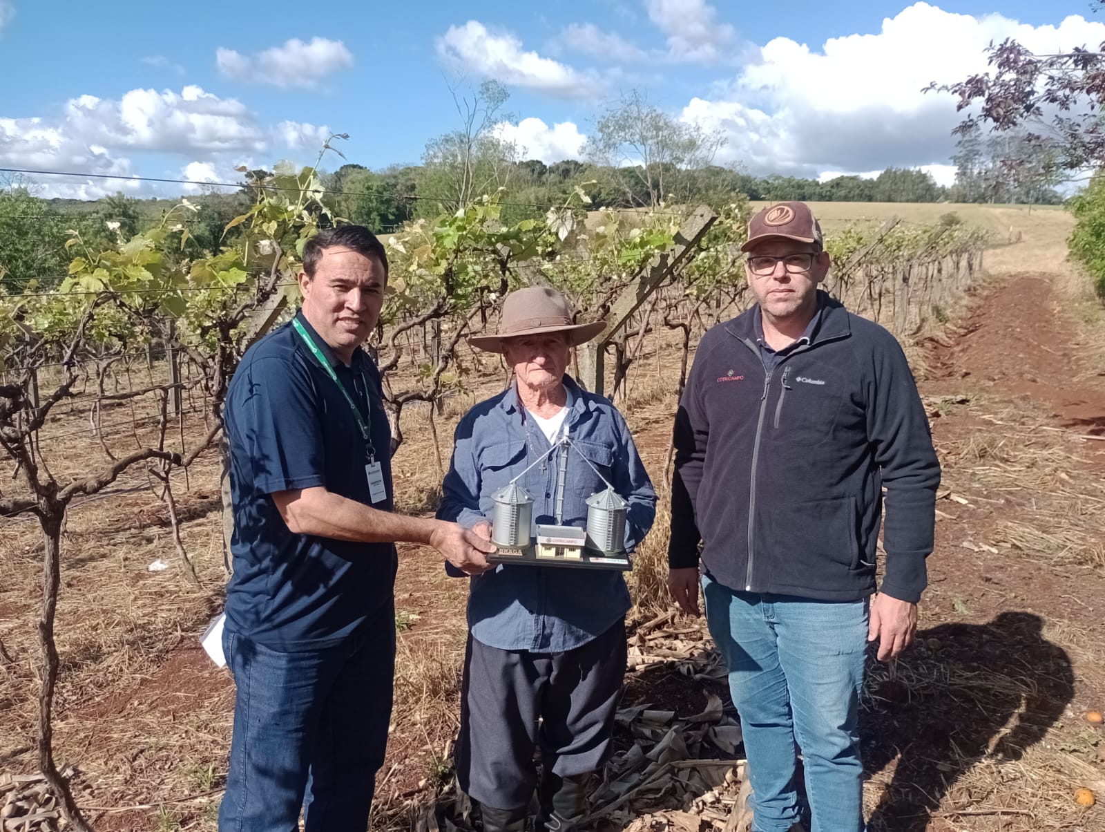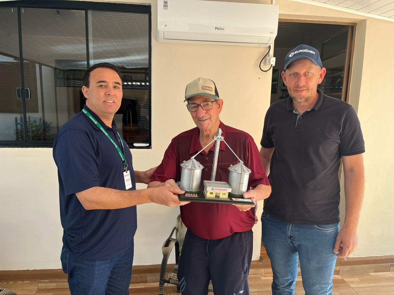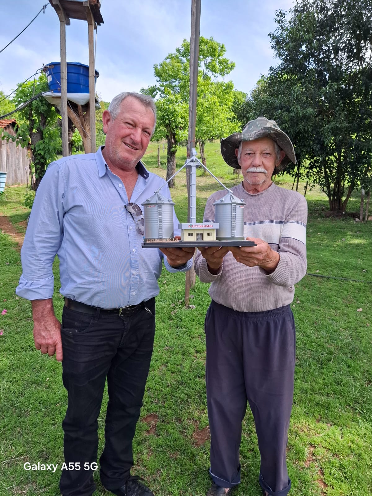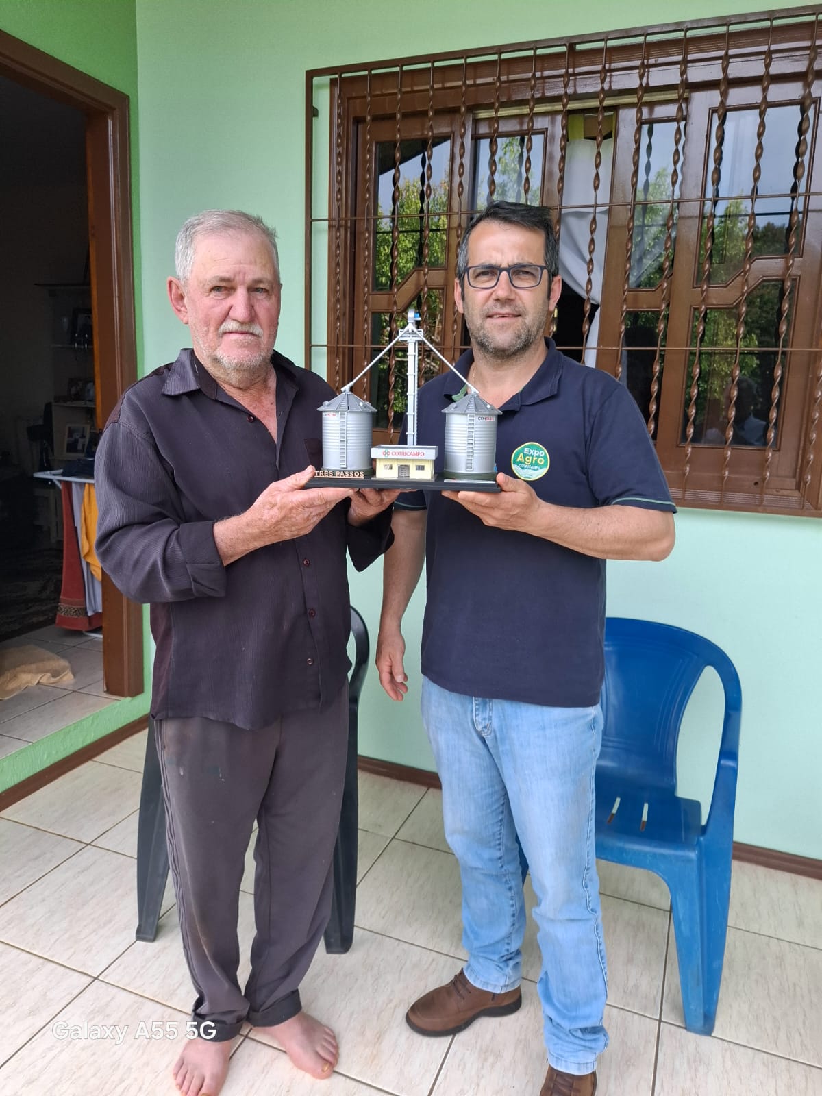 Em Braga, o gerente Enderson Viana e o Conselheiro Leomar Reichert realizaram a entrega aos produtores Nelson Lissa Dalpra, João Baldo, Ermozil Godoy da Silva, Norberto Dalla Libera, Sadi Carlos Formentini e Antônio Baldo.
