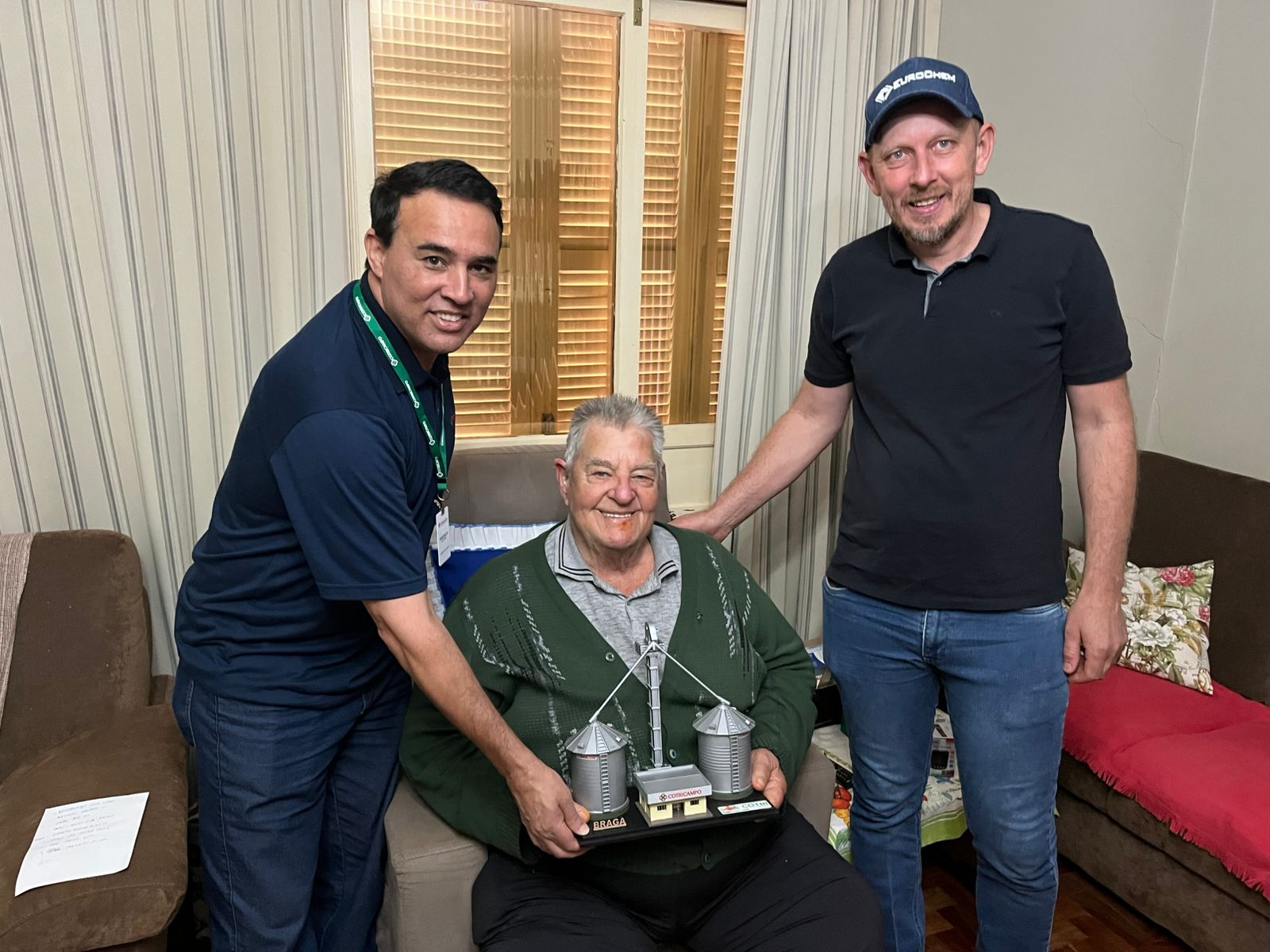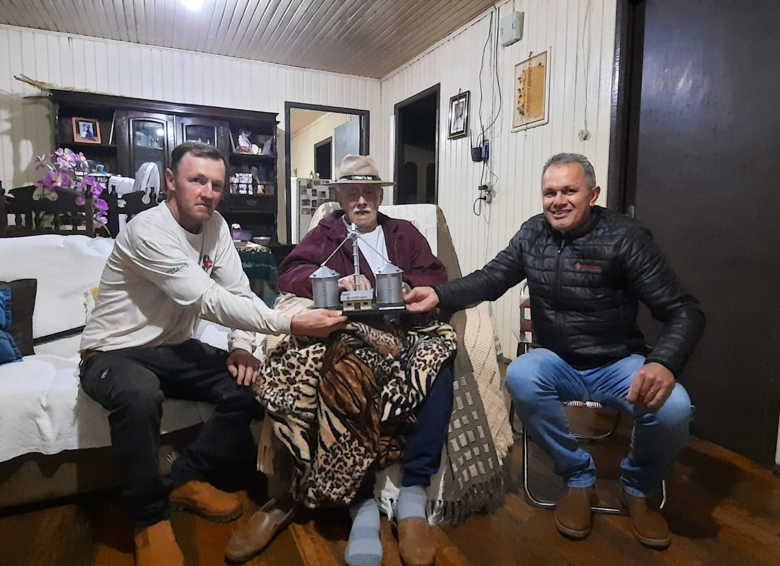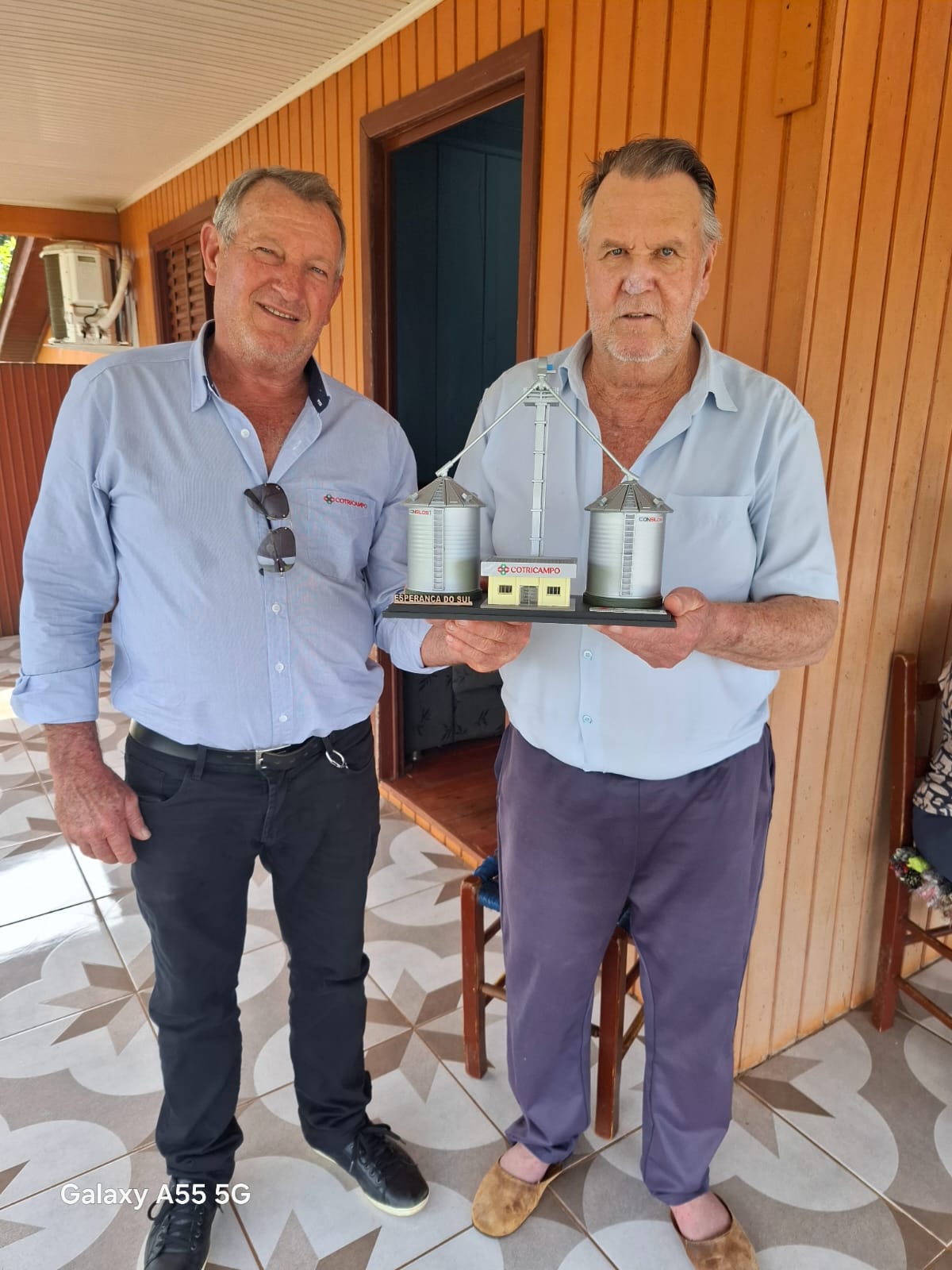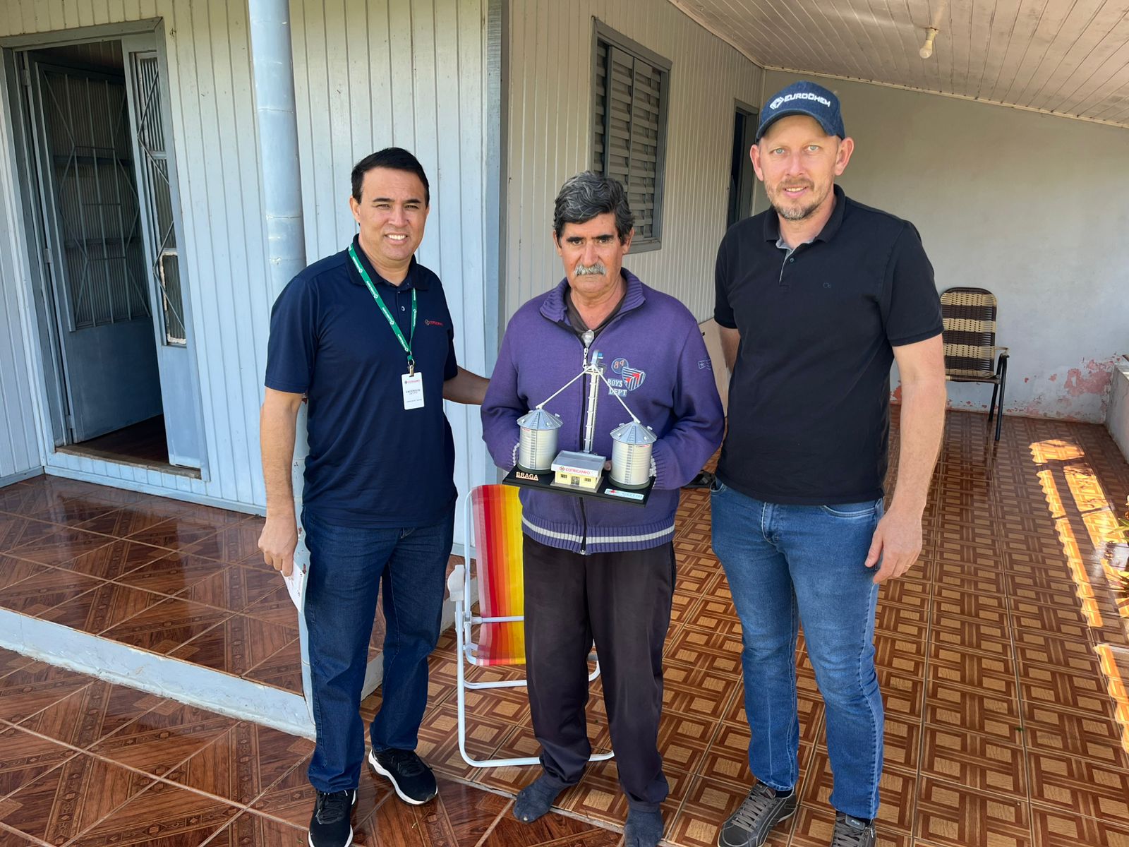 Em Sede Nova, o gerente Luis Antonio Franz e o Conselheiro Jones Luis Jung fizeram entrega ao associado Pulidorio Veríssimo de Jesus, 93 anos de idade, associado à Cotricampo a 53 anos.