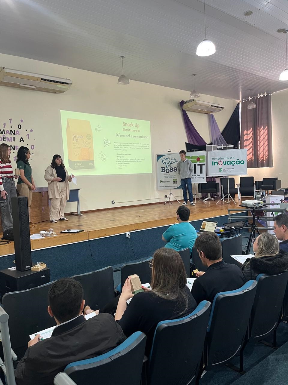 Foi realizada quarta-feira (22), no auditório do IFFar – Campus Santo Augusto, a etapa local do Bye Bye Boss – Desafio do Empreendedorismo e Inovação, com a participação de 12 equipes formadas por estudantes dos cursos técnicos integrados ao ensino médio. A Cotricampo esteve representada na banca avaliadora.