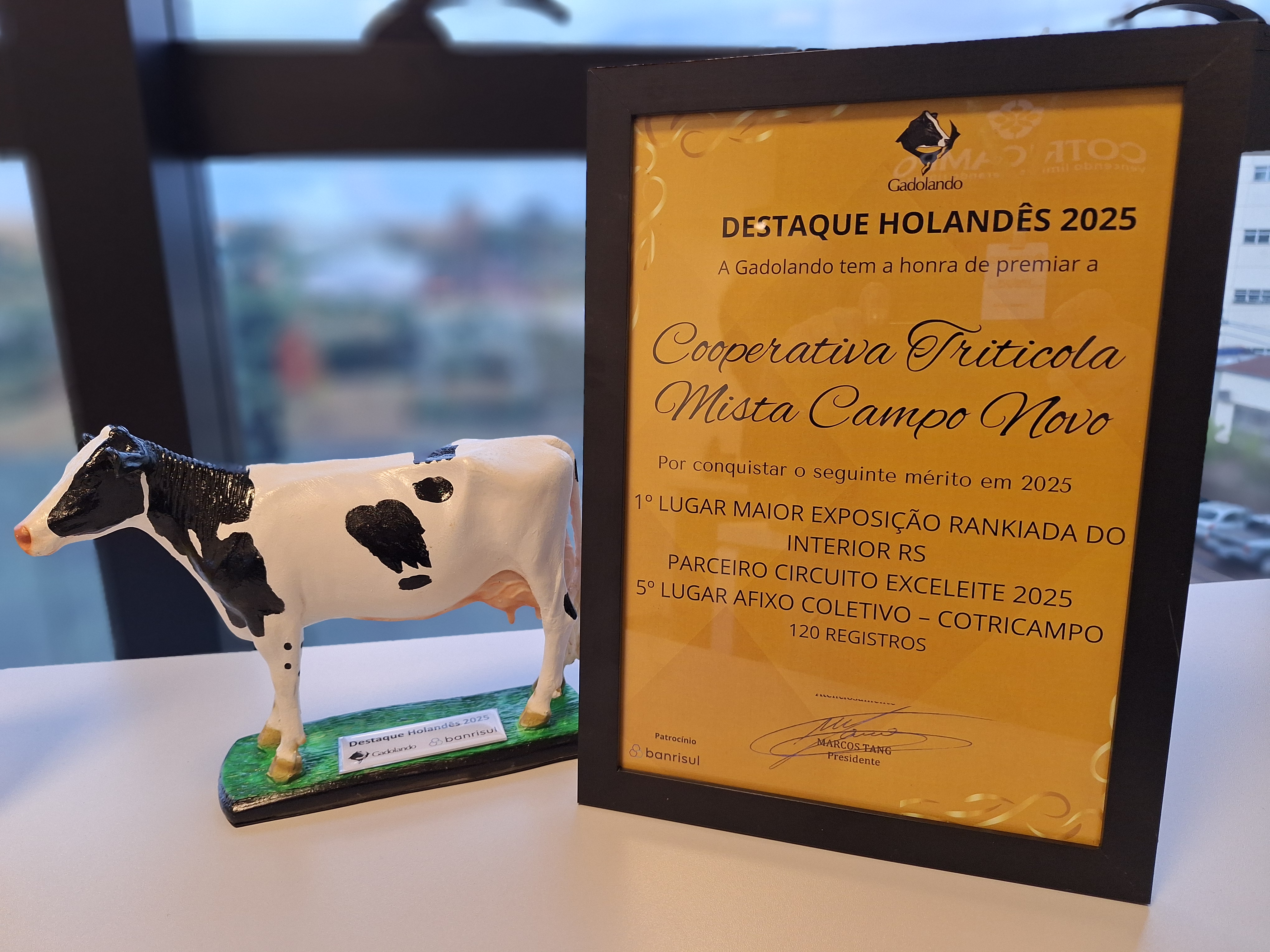 No último sábado (13), em evento ocorrido no Parque de Exposições Assis Brasil, em Esteio, a Cotricampo recebeu o troféu Destaque Holandês 2025, sendo premiada pela Gadolando (Associação dos Criadores de Gado Holandês do Rio Grande do Sul), por conquistar o seguinte mérito em 2025: 1º lugar na maior exposição ranqueada do interior do RS; entidade parceira no Circuito Exceleite; e 5º lugar afixo coletivo Cotricampo – 120 registros.