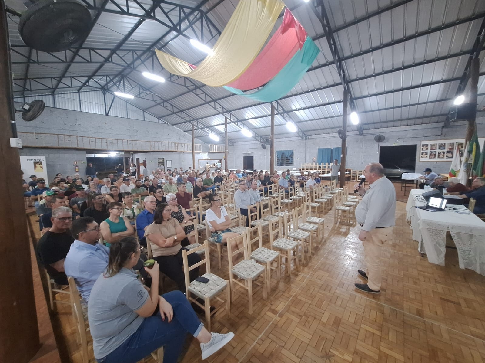 Durante as pré-assembleias, o diretor-presidente, Gelson Bridi, o diretor-secretário, Luciano Seefeld, o contador, Roni Almeida, o coordenador do departamento de comunicação social, Vadacir Guedes, e o jornalista do departamento de comunicação, Vinicius Araujo, apresentam os investimentos realizados, relatório de atividades, balanço financeiro e contábil, referente ao ano de 2025 da cooperativa, além de questões estatutárias, como renovação do Conselho Fiscal e das lideranças de núcleo.